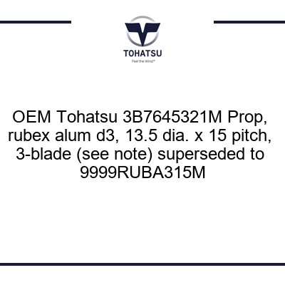3B7645321M Prop, rubex alum d3, 13.5 dia. x 15 pitch, 3-blade (see note) superseded to 9999RUBA315M quantity