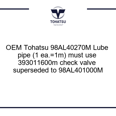 98AL40270M Lube pipe (1 ea.=1m) must use 393011600m check valve superseded to 98AL401000M